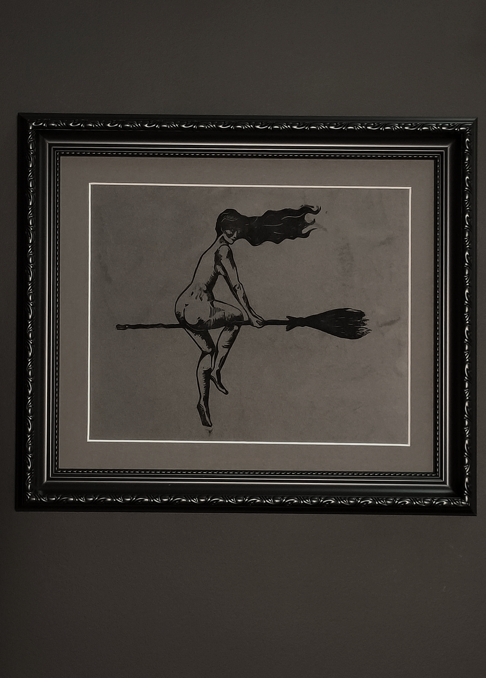 Flying Witch Velvet Lino Print
